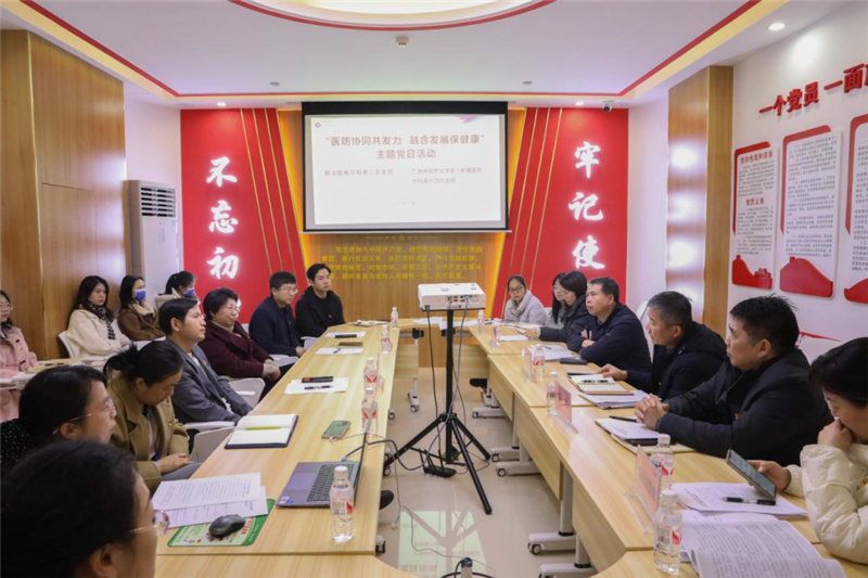 为进一步加强自治区疾控与第一附属医院的交流合作,2月26日下午,自治区疾控局第二党支部与第一附属医院外科第十四党支部联合开展了“医防协同共发力、融合发展保健康”主题党日活动。