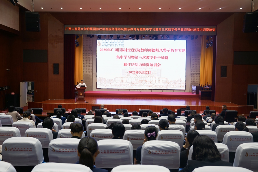 3月12日下午,广西国际壮医医院召开师德师风警示教育专题集中学习会议。医院全体领导班子、中层干部,各教研室相关人员、科室教学秘书、住培各类教学人员、研究生导师以及教务学生部工作人员参会。