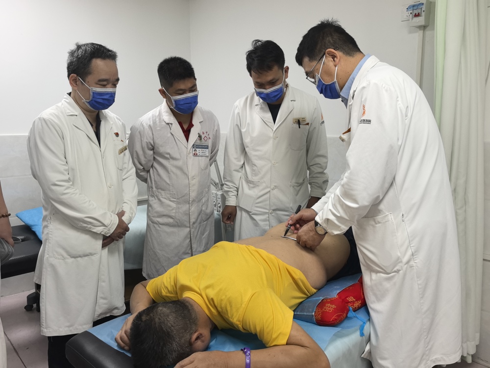 ▲陈小刚运用小针刀疗法为患者治疗,基层医生跟随学习。