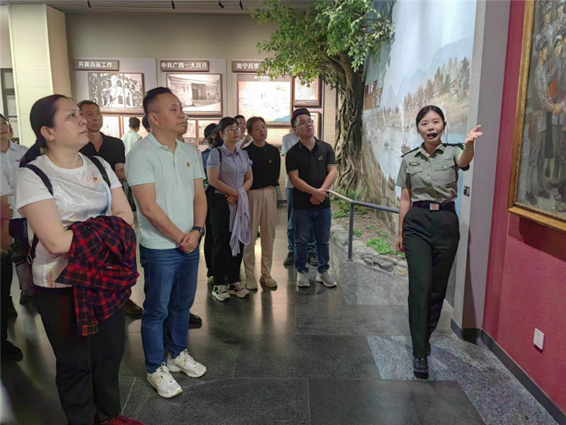 当日上午,支部党员到达百色起义纪念馆,在纪念碑园深入了解邓小平、张云逸等老一辈革命家领导的英勇事迹,并向革命先烈敬献花篮,默哀致敬,表达对先烈们的深切缅怀和崇高敬意。