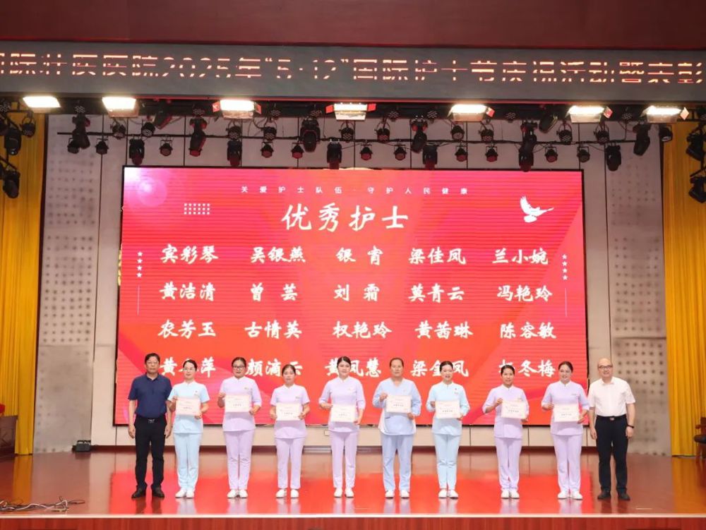 为庆祝第114个国际护士节的到来,进一步提升国壮护士职业幸福感,展示护理队伍团队凝聚力和职业风范,5月10日,广西国际壮医医院举办2025年“5·12”国际护士节庆祝活动暨表彰大会。医院在家领导班子成员到场祝福、祝贺,部分护理前辈、中层干部及护士代表参会。
