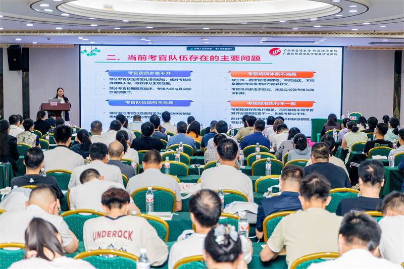 自治区卫生健康人才与技术服务中心主任闭闵、广西医科大学第一附属医院教学部主任韦秋文,附属瑞康医院教务科主任姜俊玲等专家先后围绕考核设计、执考规范、SP管理等内容展开专题授课,通过理论讲解与案例分析相结合的方式,帮助考官全面掌握考核要点。