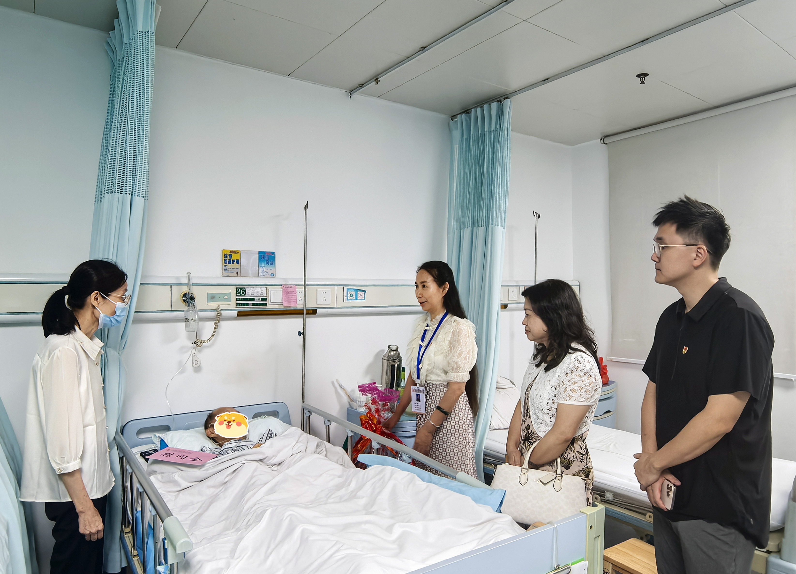 唐振宇、黄国东、吴光、庞刚、陈俐慰问王丽、肖常青