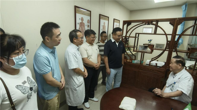 7月11日上午,广东省湛江市第一中医医院医院党委委员、副院长陈观尚一行11人到第一附属医院仙葫院区参观交流。第一附属医院副院长、仙葫院区院长张高炼,仙葫院区副院长江现强及有关科室工作人员陪同。