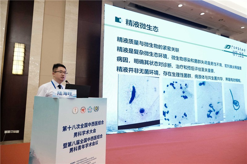 在本次大会上,第一附属医院宾彬教授再次当选中国中西医结合学会男科专业委员会副主任委员,男科负责人陆海旺、工作室骨干王杰当选青年委员。宾彬在大会“妙解难题”板块作《男性尿频中西医结合诊疗思路和体会》主题报告,陆海旺在“青年荣耀”板块作《精液微生物检测、评估与男科医生的决策困境——兼谈中医“以方测证”思维》主题报告,内容新颖,角度独特,广受参会同道称赞。