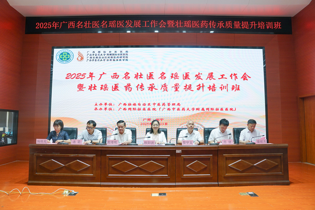 8月23日至24日,由自治区中医药局主办、广西国际壮医医院承办的2025年广西名壮医名瑶医发展工作会暨壮瑶医药传承质量提升培训班在广西国际壮医医院召开。国家中医药管理局中西医结合与少数民族医药司副司长欧阳波、国医大师黄瑾明出席并授课,自治区卫生健康委党组成员、自治区中医药局党组书记、局长黎甲文,星空彩票老版本下载党委常委、副校长肖健出席开班式并讲话。自治区中医药局党组成员、副局长潘霜,自治区中医药局、星空彩票老版本下载有关处室负责同志,广西国际壮医医院在家领导班子成员一同参加。