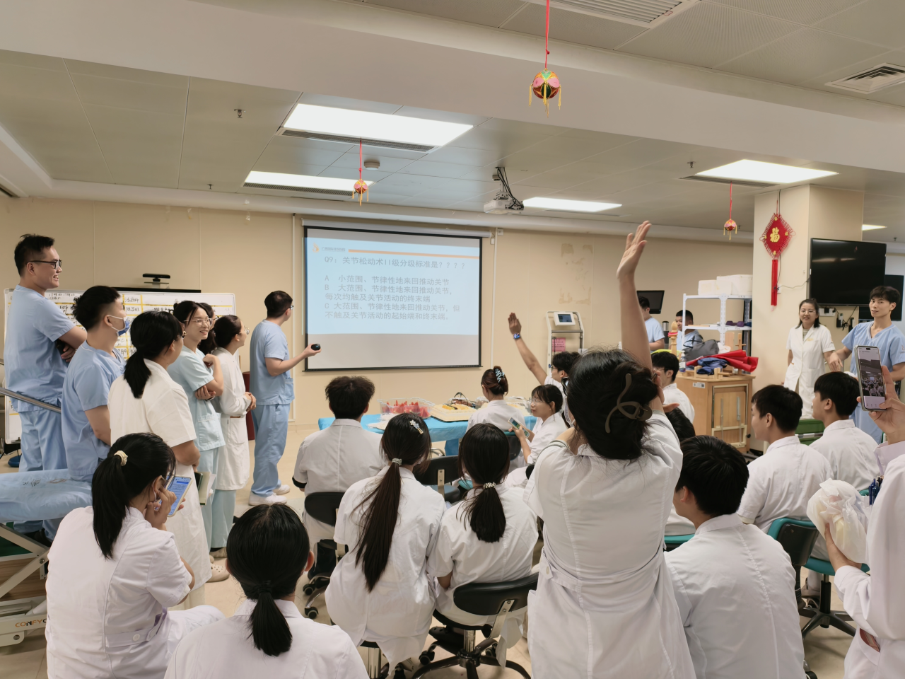 随后,康复医学科治疗师教学秘书曾令辉同志主持开展知识竞赛活动,“健康老龄化闯关赛”将专业知识转化为生动互动,党员同志们积极抢答,现场气氛活跃。