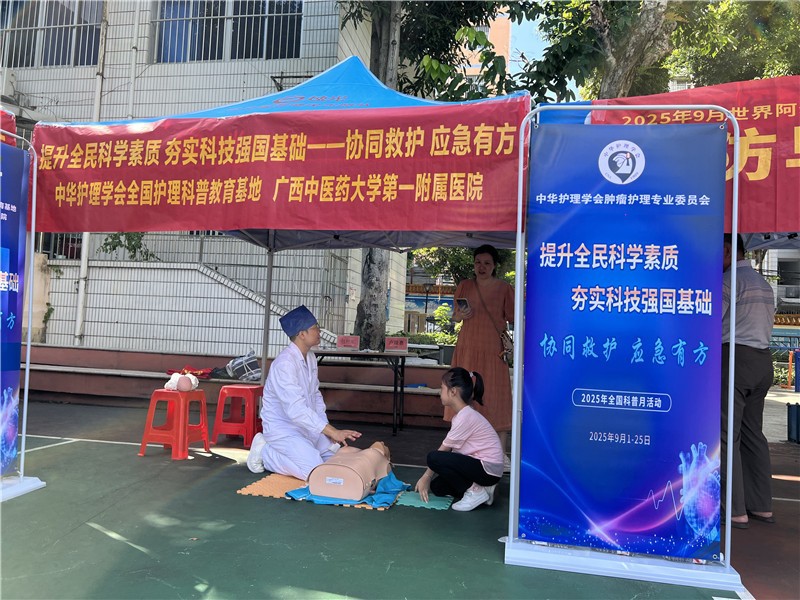 为积极响应中华护理学会全国科普月的活动号召,大力宣传弘扬中医药文化,9月13日,第一附属医院护理部携手方园社区卫生服务中心在石油居民小区开展主题为“提升全民科学素质 夯实科技强国基础-协同救护 应急有方”科普宣传义诊活动。
