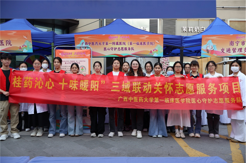 受南宁市党建引领“专业社工+志愿服务”敬老月主题活动邀请,10月25日第一附属医院团委、社工部组织第一临床医心守护志愿服务队参与此次活动,并在现场开展“桂药沁心·十味暖阳”义诊。