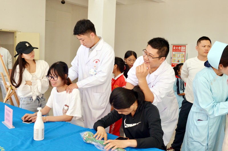 在报告厅内,中医药博物馆的中药师通过生动讲解和互动教学,向学生们普及了中医药养生知识,并带领大家初步体验了传统养生功法“八段锦”,激发了孩子们对中医文化的浓厚兴趣。图书馆一楼的体验区人气爆棚,茶饮品尝、香囊制作、药材辨识等互动项目依次排开,师生们在专家指导下“眼观、手触、鼻闻”,亲手将石菖蒲、藿香等药材制成随身香囊,品尝菊花、生姜等搭配的养生茶饮,在实操中解锁中医药的神奇密码。此外,专家团队还为师生提供骨科健康评估、视功能检查、心血管保健咨询等服务,进一步加深师生对健康生活方式的理解。医院还向学校捐赠了一批中医药启蒙读物,为学生们打开了解中医药文化的窗口。