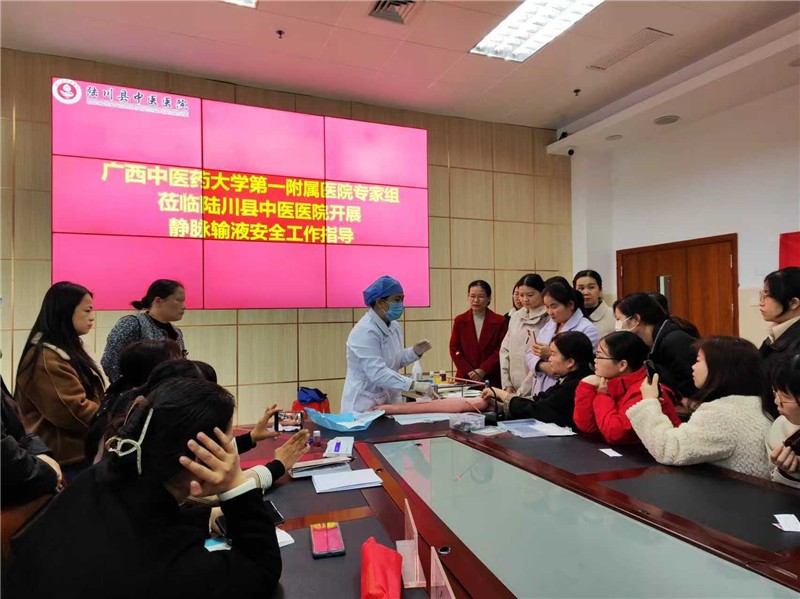 为提升基层医疗机构静脉导管护理水平,11月18日,第一附属医院静疗小组护理专家韦金鸾、张冰玉副主任护师应邀赴陆川县中医院开展精准帮扶活动。