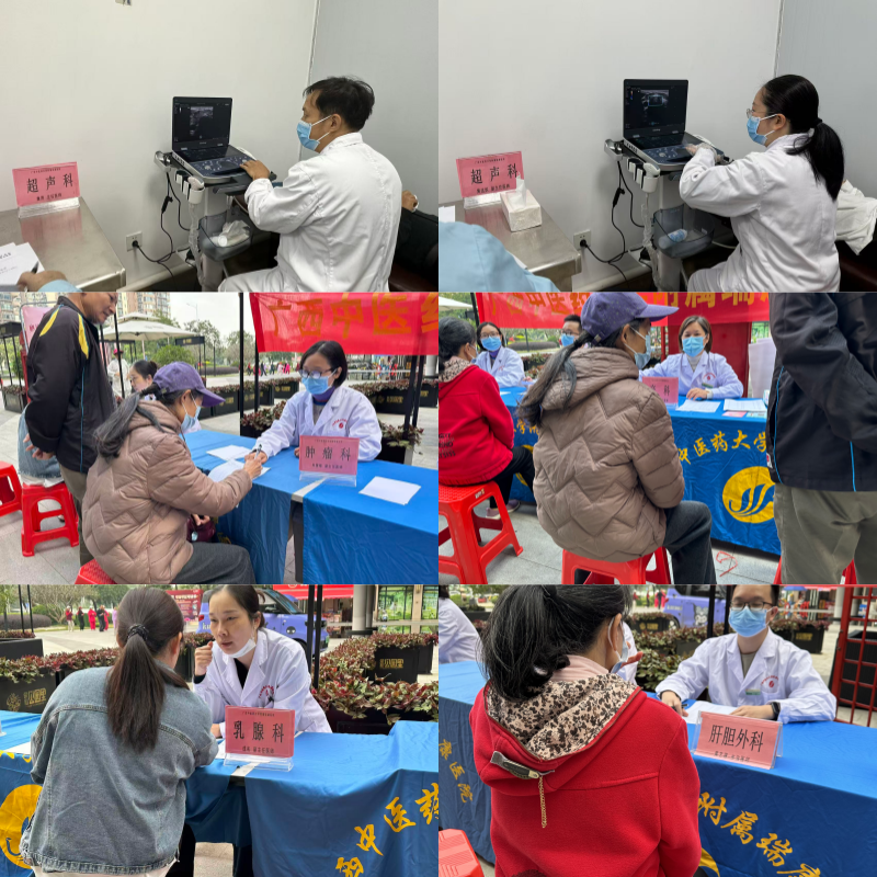 12月19日,受江南区荣和公园里社区卫生服务站邀请,附属瑞康医院医疗外联部组织肿瘤科一区、乳腺病科、产科、肝胆腺体周围血管外科、超声科、护理部等科室的专家,来到江南区仁和路55号荣和公园里东区西大门广场举行“中医药文化进社区”系列义诊活动,为社区居民送去健康关怀与中医特色诊疗服务。