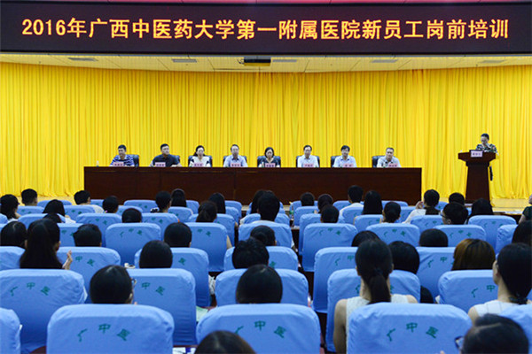 2016年7月25日,星空彩票老版本下载第一附属医院2016年新员工岗前培训开班仪式在五楼多功能学术大厅拉开序幕。一附院党委书记李敏智,院长黄贵华,党委副书记、纪委书记、副院长吴西西,副院长卢健棋、桂雄斌、谢胜、周建国、钟远鸣,人力资源部全体成员,183名新员工及102名规范化培训生参加了开班仪式。仪式由人力资源部主任谭丽云主持。