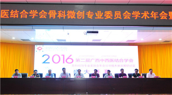 2016年8月26-28日,由广西中西医结合学会骨科微创分会主办,星空彩票老版本下载第一附属医院承办的“第二届广西中西医结合学会骨科微创学会学术年会暨新技术新进展研讨会”在南宁召开。会议特邀区内外知名骨科专家:吉林大学第一医院脊柱外科闫明主任医师、河南省直第三人民医院椎间盘治疗中心李星晨副主任医师、辽宁中医药大学附属第四医院疼痛科主任耿保梁教授等莅临讲课指导。星空彩票老版本下载副校长戴铭、星空彩票老版本下载第一附属医院副院长卢健棋、钟远鸣等出席开幕式。来自广西区内各级医院的医务人员近300人参加会议。会议开幕式由一附院副院长钟远鸣主持。