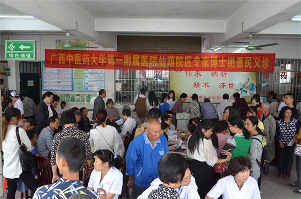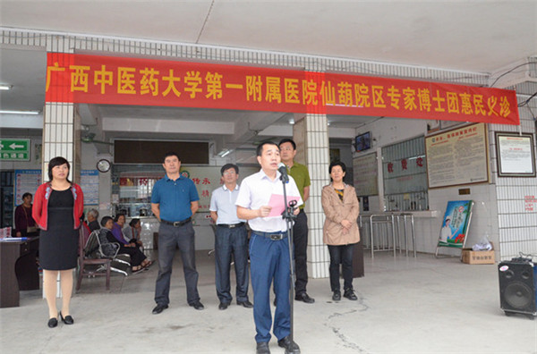 内分泌科刘春红教授进行了《糖尿病规范化治疗方案》的讲授、重症医学科王荣辉副教授《感染性疾病的抗生素用药原则》的专题讲座、脾胃病科潘东洪副主任护师进行了《中医外治法在脾胃病的应用》中医适宜技术小讲课;广西名中医史伟、周宾宾进行了查房和科室建设指导;以党员为主、包括段戡、何新兵、王荣辉、张华、陆璇霖、吴志洪、安晓霞等在内的团队全体专家进行了惠民义诊,接诊群众300多人。