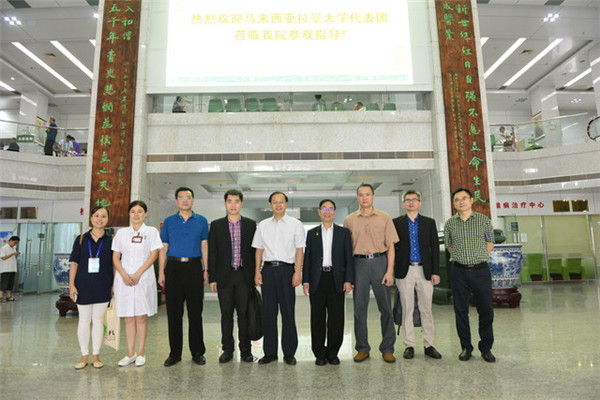 拉曼大学代表团由该校校长蔡贤德高级院士带队,同行的还有健康与卫生学院中医系主任郑建强博士和叶耀斌老师。代表团一行人参观了一附院院史馆、中医药文化长廊,并访问了中药房、煎药室、八桂名医馆、壮医科、中医“治未病”中心、中医内科门诊及针灸科门诊等特色科室。在中医“治未病”中心,钟远鸣副院长向客人介绍了一附院教学的整体情况,双方还进行了简短的座谈,就教师培训、学生交流等方面达成了协议。最后,代表团一行还看望了拉曼大学在一附院实习的该校学生,并与教学部、门诊办及各相关实习科室教师代表进行了座谈,深入了解学生实习的有关情况。