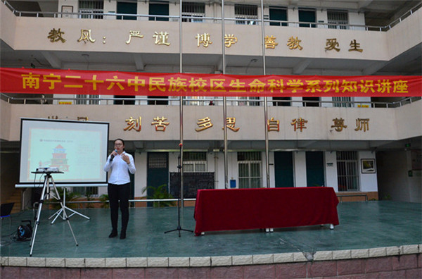 2017年3月13日下午,一附院中医“治未病”中心团队走进南宁市第二十六中学,为该校初一、初二共18个班900余名初中生进行中医文化宣教,让同学们近距离感受了一回中医文化的魅力。