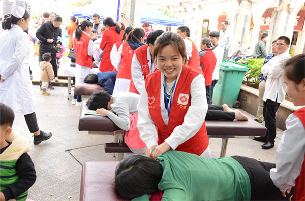 一附院青年志愿者为群众进行手法按摩