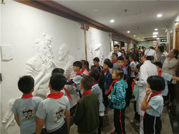参加活动的同学和家长们在一附院中医治未病中心巡讲人员的引导下,一起参观了一附院中医药文化长廊。护士长刘倩给大家介绍中草药标本,讲述中医小故事,同学和家长们饶有兴致地边聆听边观赏,纷纷露出“好神奇”的神态。