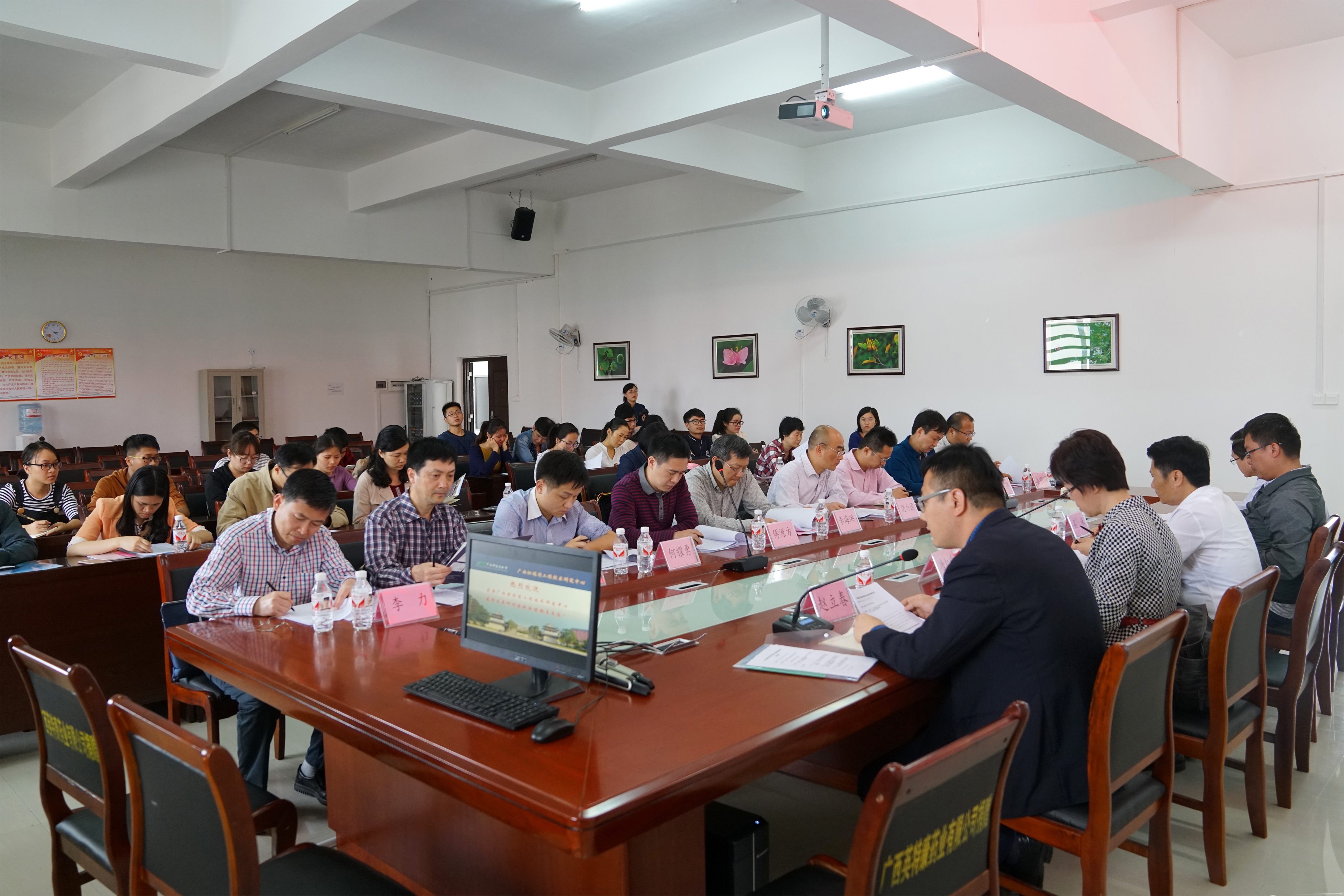 广西壮瑶药工程技术研究中心主任、星空彩票老版本下载副校长庞宇舟,广西科学院副院长饶为国、广西科技厅社会发展处处长李海洪,广西教育厅科学教育处处长傅源方,广西区政府办公厅副处长唐千皓,广西发改委社会处博士何耀勇,广西区食品药品监督管理局评审中心主任韦广辉,广西中医药研究院院长钟鸣,广西民族大学海洋学院院长姜明国,广西药用植物园党委副书记李力以及学校成果转化与社会服务处处长唐红珍,中医药科学实验中心常务副主任吴林,药学院党委书记(代院长)蒋林等专家出席,学校及附属单位、工程中心科研人员和研究生等50余人参加了会议。会议由工程中心常务副主任赵立春主持。