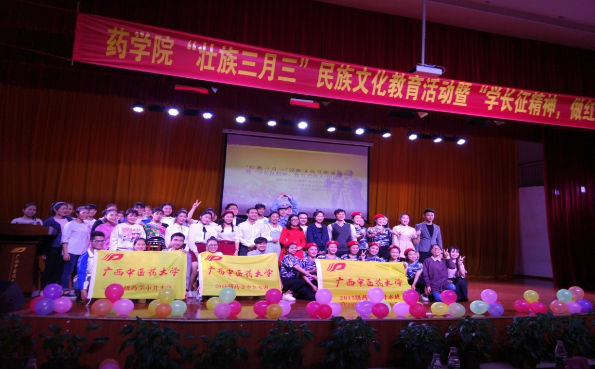 3月24日晚,药学院“壮族三月三”民族文化教育活动暨“学长征精神,做红色传人”朗诵比赛在学校小礼堂举行。