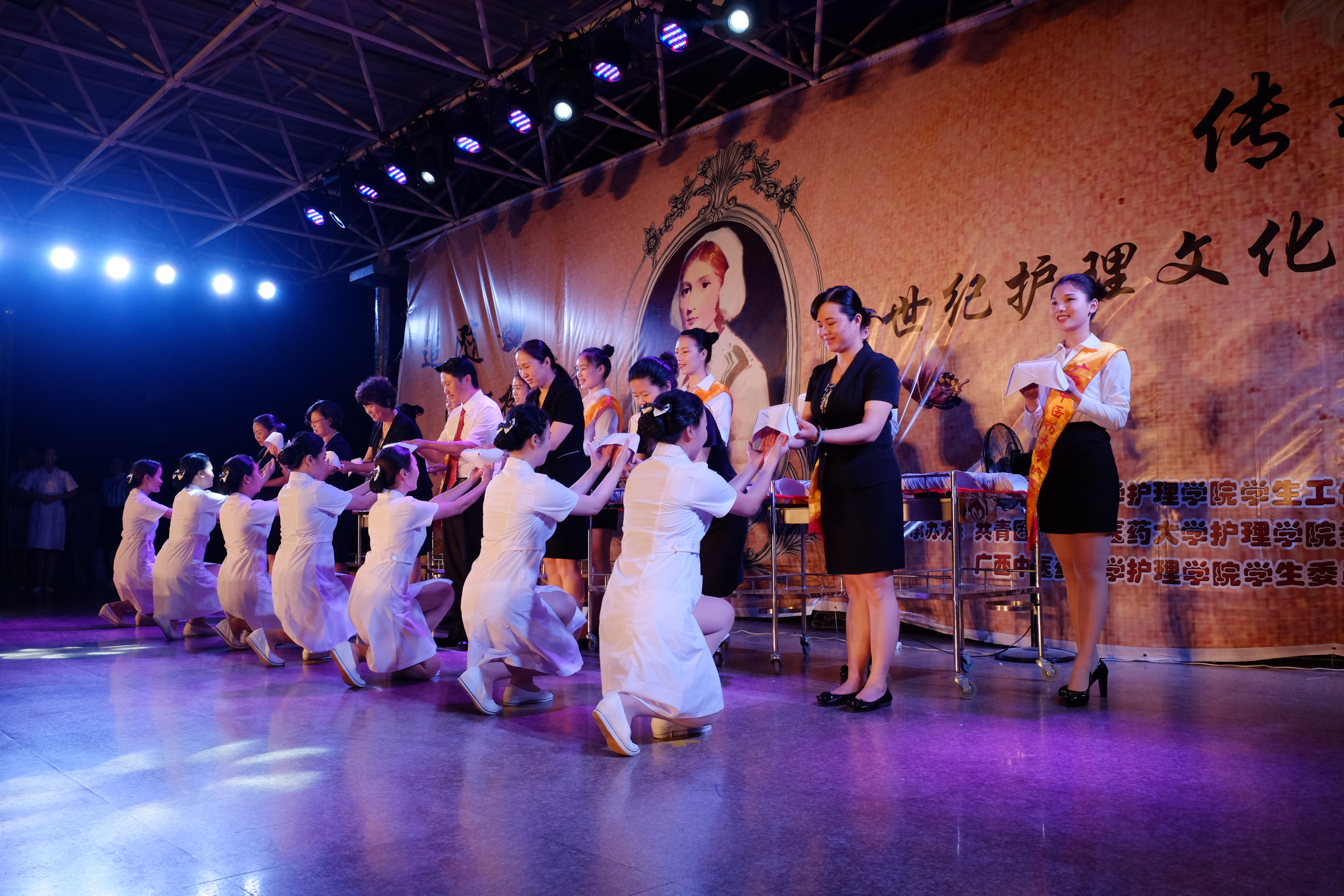 为迎接“5.12国际护士节”的到来,加强护理专业学生职业情感教育、增强学生责任感、明确护理职责,星空彩票老版本下载护理学院于5月9日晚在明秀校区举办了2017年“5•12”国际护士节授帽仪式。星空彩票老版本下载副校长庞宇舟、招生与就业处处长肖华业、校团委书记王春花、学生工作部(处)副部(处)长吴健文、教务处副处长杨仕权、护理学院党委书记、院长吴彬、副书记韩叶芬、副院长马秋平、胡艳宁、第一附属医院护理部主任韦衡秋、附属瑞康医院护理部主任卢洪霞、护理老前辈侯瑞华等出席,护理学院全体师生、各学院师生代表参加。仪式由马秋平主持。