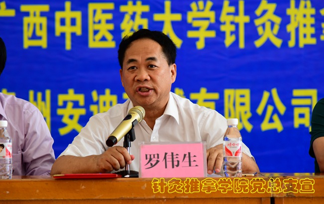 罗伟生在讲话中指出,举办针灸推拿技能竞赛目的在于检验我们针灸推拿学科在专业建设和教学改革上的成果,他希望针灸推拿学院通过“以赛促学,以赛促练,以赛促改”的教育思想引领下,不断推进针灸推拿专业的教学改革,提升针灸推拿专业人才培养水平,推动针灸推拿学科建设和学术发展。
