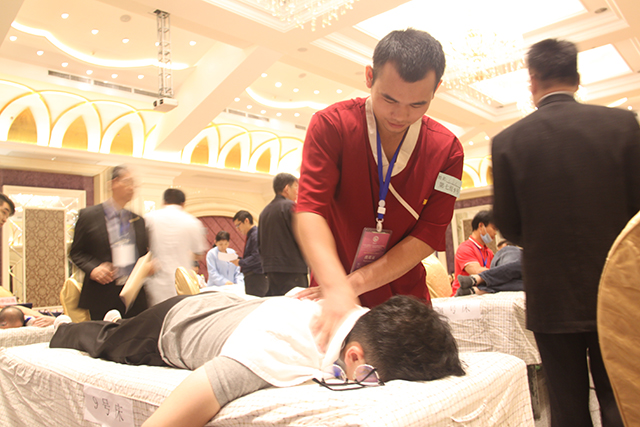 会议主要分为学术专题报告、诊疗技术表演、医疗保健美容产品展销等7项内容。在13、14号两天的时间里,专家学者们就各自研究的领域进行了交流及展示。其中,韦贵康就“八桂韦氏骨伤流派的形成与多元性手法研究”进行了交流与分享,博得了听众的阵阵掌声。朱立国阐述了“建立一种中医手法研究思路及进展”的研究。他通过借助传感设备、力学分析、建立模型等建立对中医手法的评价及考核标准。思路条理清晰,说服力强,赢得了大家的一致好评。学术分享主要针对脊柱相关疾病诊疗为中心,结合现代医学与传统疗法展开,涵盖流派传承、正骨、康复与特色民间疗法,使场下观众大开眼界。