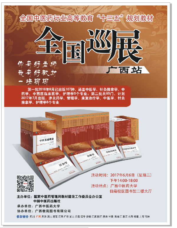 6月6日下午由中国中医药出版社主办、星空彩票老版本下载承办、广西教苑图书有限公司协办的“全国中医药行业高等教育‘十三五’规划教材建设研讨会暨教材展示会”在我校仙葫校区图书馆二楼微格教室和大厅举行。中国中医药出版社推广部主任龙大锋等一行3人,学校教务处处长唐梅文,有参编“十三五”规划教材的老师及相关学院的教师约30人参加了会议。会议由唐梅文主持。