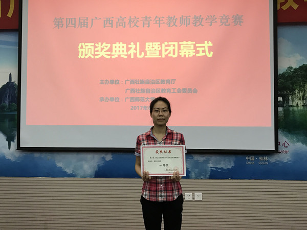 6月21日~23日,第四届全区高校青年教师教学竞赛在广西师范大学举行,来自全区36所本科院校(含独立学院)的100名青年教师参加了本次大赛。我校选派了在校级基本功比赛中取得优异成绩的三名选手参加了比赛,分别为药学院杜成智老师、瑞康临床医学院童汪霞老师、公共卫生与管理学院梁宝桐老师。三名教师在比赛中发挥稳定,勇夺佳绩,其中童汪霞老师荣获工科组一等奖,梁宝桐老师荣获文科组一等奖,杜成智老师荣获理科组二等奖。