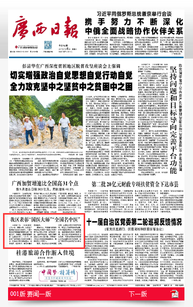 【广西日报】我区表彰“国医大师”“全国名中医”