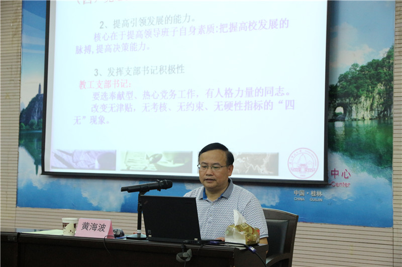 广西师范大学校办主任黄海波作题为《党组织书记的工作方法与工作艺术》报告