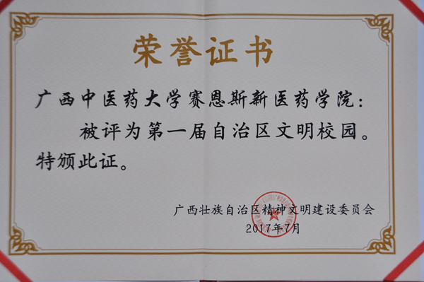 日前,自治区精神文明建设委员会表彰了一批城市、单位、学校、家庭和个人精神文明建设先进典型。赛恩斯新医药学院荣获“第一届自治区文明校园”称号,标志着学院精神文明建设工作迈上了一个新台阶。