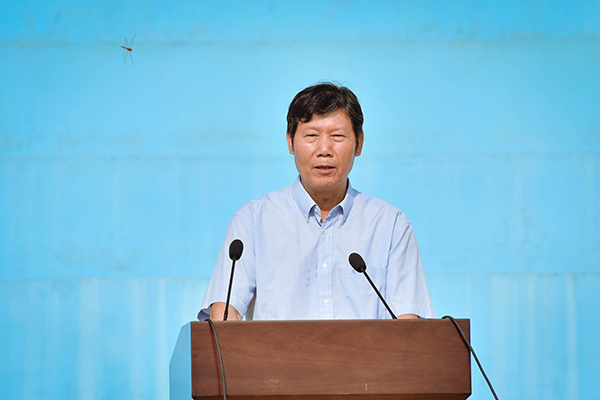 李成林代表学院向全体教官表达了衷心的感谢和崇高的敬意,并向全体参训同学表示由衷的祝贺和真挚的祝福!同时对同学们提出三点希望:一是做一个“四有”好青年,做有理想、有道德、有文化、有纪律的社会主义的合格建设者,不断提高自身的思想政治觉悟,提高自身综合素质。二是要秉承“明德自强,和而不同”的院训精神,继承和发扬部队优良传统和作风,敢于吃苦、艰苦奋斗,在学校继续保持高昂的斗志,克服学习和生活中可能遇到的困难和障碍,做学习和生活的强者。三是培养和践行社会主义核心价值观,增强团队意识和集体意识,把这次军训中成果运用到今后的学习生活中,以激励自己为建设社国刻苦学习,早日成为报国有志、建国有才、效国有力的新时期的优秀人才。