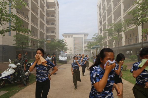 我校每年都要组织新生开展消防演练活动,目的是增强全体新生及教职工消防安全意识,提高火灾事故中逃生、自救的能力,特别是让刚刚步入校门的学子们真切地体会如何应对火灾事故,从而达到终生受益的目的。