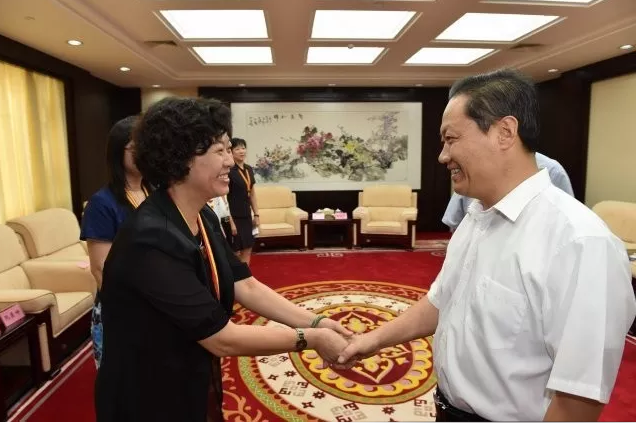 广西壮族自治区党委书记(右一)接见我校护理学院院长吴彬