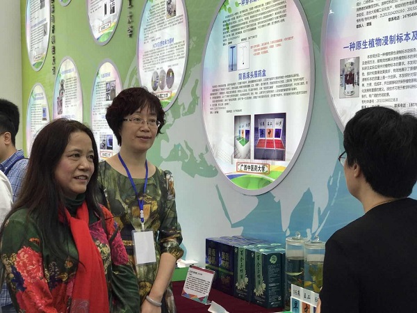 我校优选了100多个相关的专利成果参加会议,其中 “一种穿衣助行器”、 “ 一种原生植物浸制标本及其防脱液制备方法 ” 的浸制标本、 “ 恒温灸具 ” 、 “ 简易床头服药盒 ” 、“黄精、玉竹产品开发”等9个外观设计和实用新型专利参加了本次专利成果实物展。参展期间,许多公司、企业对我校参展产品表现了浓厚兴趣,并初步达成合作意向。此次发明创造成果展览交易会对促进我校成果推广与转化起到了积极推进作用。