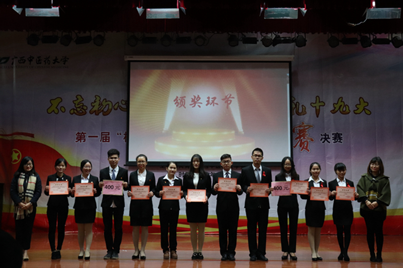 2017年12月17日,以“不忘初心跟党走,青春献礼十九大”为主题的星空彩票老版本下载第一届“桂中医青年说”辩论赛决赛在仙葫校区小礼堂举行。基础医学院、第一临床医学院、瑞康临床医学院、研究生学院、护理学院、针灸推拿学院六支队伍经过激烈角逐,针灸推拿学院队夺取本次辩论赛的最高分,摘得一等奖。基础医学院、护理学院队荣获二等奖,瑞康临床医学院、第一临床医学院、研究生学院荣获三等奖。针灸推拿学院队一辩辩手李春林荣获最佳辩手奖,微信公众平台也投票选出了获得最具魅力辩手奖的两位辩手为曾阳琨、陈思扬。