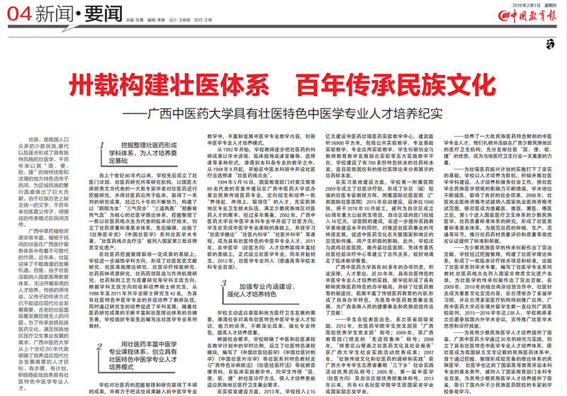 【中国教育报】卅载构建壮医体系 百年传承民族文化——星空彩票老版本下载具有壮医特色中医学专业人才培养纪实