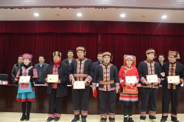 结业典礼上,领导们为“优秀瑶医药人才传承培训班”的198位结业考试合格的学员代表颁发结业证书。