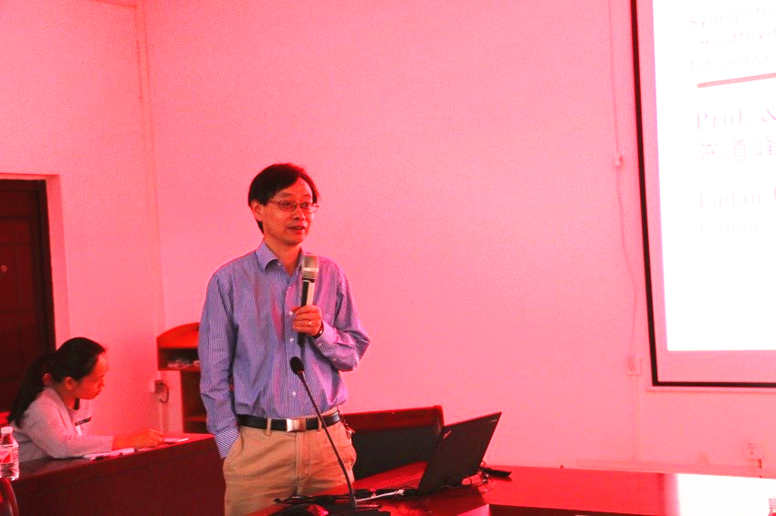 杜力军教授以“文章发表与课题申报”为题,针对如何撰写一篇高水平的文章提出了四点建议,并以课题组已发表文章为例做了详细生动的解读,重点讲述了如何写好课题申报书。提出几个对有助于研究设计、发表文章、课题申报的概念,并与现场师生进行了充分的交流。钟国跃教授以“民族药物研究与新药开发”为题,以我国藏、苗、黔、蒙、彝等民族药为例,详细介绍了对创新新药研发源头——民族药物的研究历程及成果,并对广西壮药、瑶药未来发展提出要求,为推动我校中医药、壮瑶药的研发提供了新思路。陈道峰教授以“鱼腥草多糖与黄酮对病毒性急性肺损伤小鼠的协同保护作用与机制”为题,详细介绍了鱼腥草的重要化学成分多糖与黄酮在抗病毒以及抗炎方面的协同作用新机制,并解答了师生共同感兴趣的问题。杨明教授以“摄影与科研”为题,详细介绍了摄影与科学研究的相通之处,以“好照片”类比“好项目”,鼓励大家以一种轻松愉悦的心态对待科研工作,在攀登科研的道路上善于欣赏和发现美丽的景色。