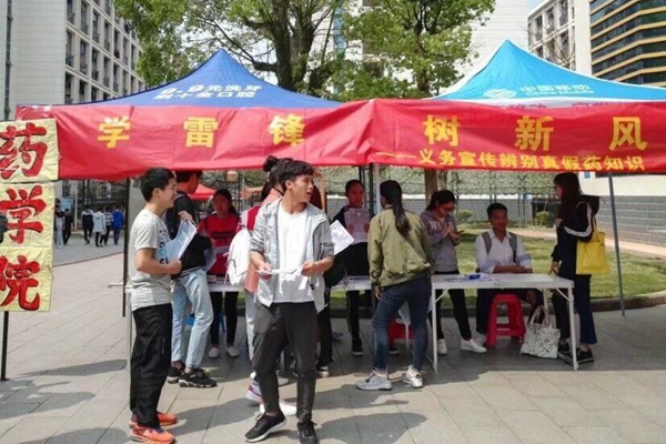 3月15日,药学院团委、学生会在五和食堂门口向本校的同学们讲解假药辨别技巧,宣传维权小贴士,并认真解答同学们的相关疑惑,认真了解相关知识。3月17日,“学雷锋 辨别真假药”的知识宣传活动在南宁市青秀区银葫小区金葫市场举行,向附近的居民们宣传假药辨别知识。