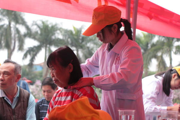 3月24日,护理学院学生工作办公室的全体老师与学生前往南宁市邕宁区新兴广场举行以“阳春三月学雷锋,青年志愿在行动”为主题的志愿服务活动。本次志愿服务分为义诊服务和向社区居民进行健康教育两种形式开展。义诊服务的同学运用按摩、艾灸等具有中医特色方式为前来咨询的居民服务;健康教育的内容以冠心病、高血压等常见病、多发病着手,进行生活起居、饮食调理、用药护理等内容耐心的向社区居民宣教,增强居民对疾病预防、健康饮食、起居有常等知识的了解。