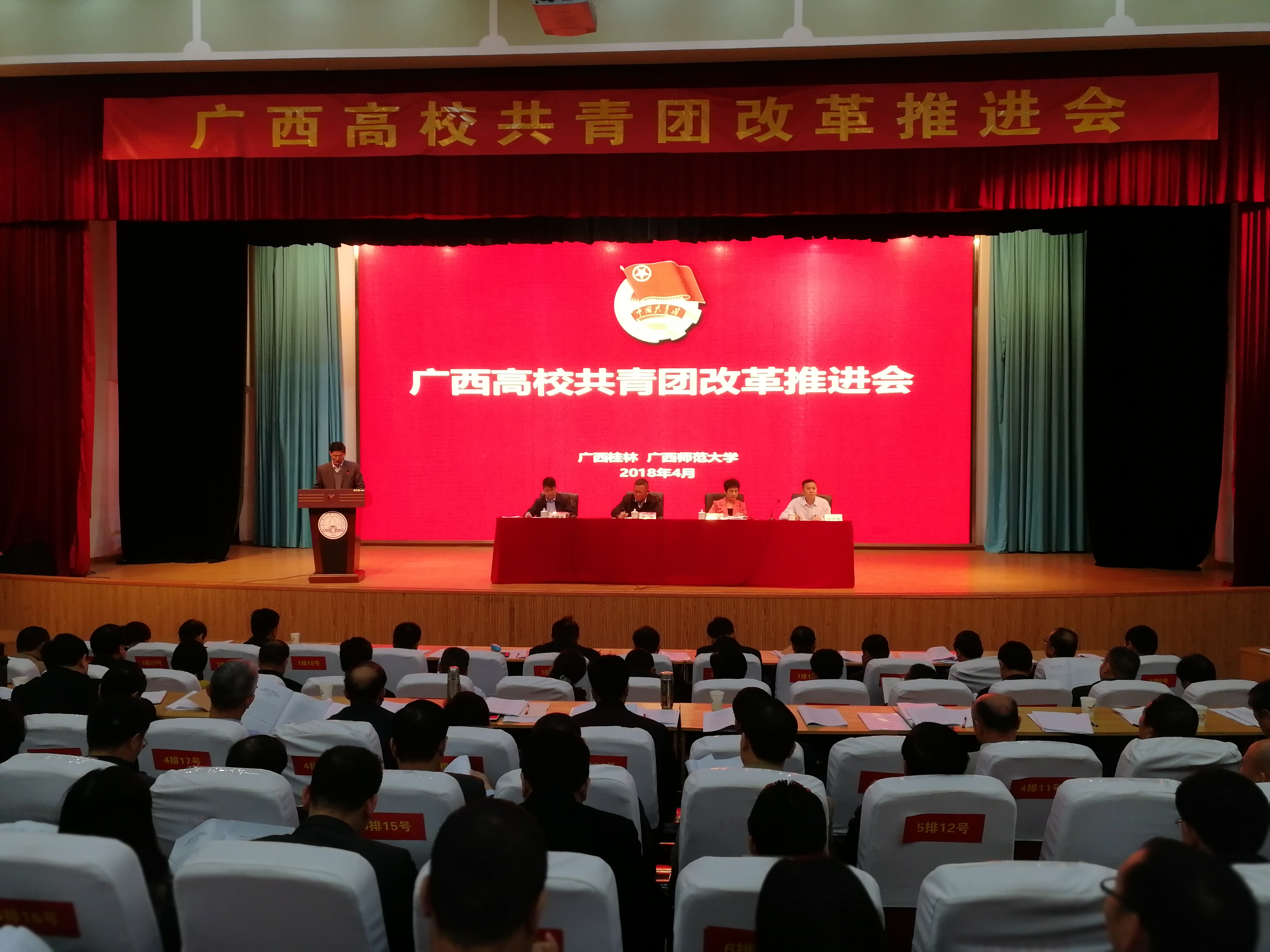 4月9日上午,全区高校共青团改革推进会在广西师范大学举行,自治区高校工委副书记覃萍、共青团广西区委副书记李晓勇参加会议并讲话,全区76所高校分管共青团工作的校领导、团委书记参加会议。我校党委副书记何并文代表学校做改革典型经验交流发言。