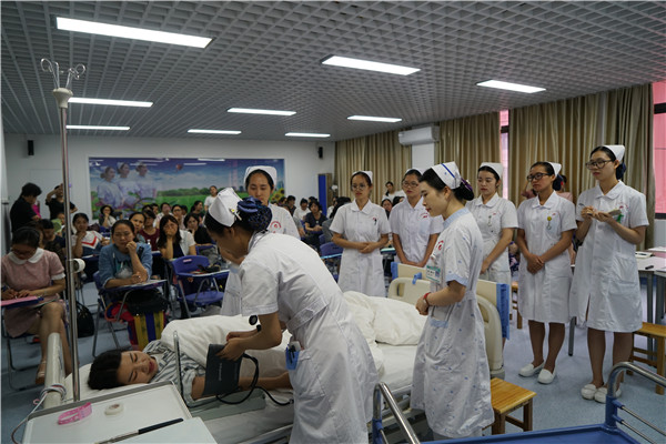 下午,学校第一附属医院和附属瑞康医院进行了“小讲课”、“护理查房”的精彩教学示范。最后,各单位领导进行分组交流和分享,就后期实践教学进行了深入的探讨。
