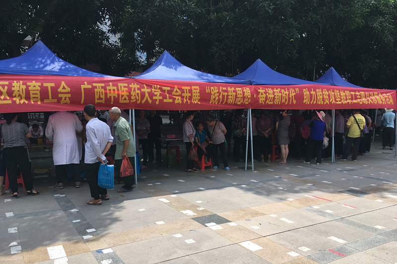 为积极发挥高校人才优势和智力优势,为贫困地区职工群众提供优质有效的公共服务,提升高校工会联系服务职工群众的能力水平,在助力打赢脱贫攻坚战中展现新作为, 5月21日至23日,我校工会常务副主席李欢澄、一附院工会常务副主席张海英组织专家组一行8人在自治区总工会副主席、教育工会主席周健带领下,与区内5所高校工会组成的工作队,赴东兰县开展“践行新思想●奋进新时代”助力脱贫攻坚教职工志愿服务活动。