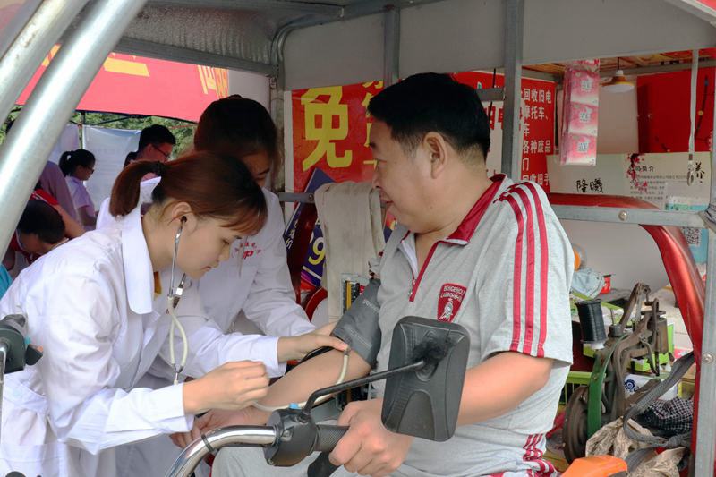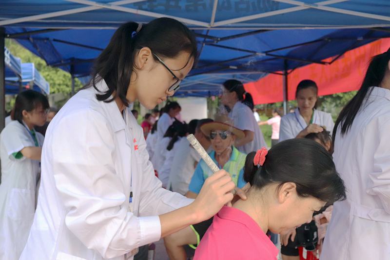 义诊活动中,手法推拿的志愿者运用按、摩、推、滚、揉等独特手法,为居民疏通脉络、放松身心;进行禁毒防艾知识宣讲的志愿者耐心地为居民介绍何为艾滋病、禁毒的方法手段以及如何预防艾滋病等知识;艾灸的志愿者通过艾灸为居民缓解疼痛;量血压的志愿者经过一番询问后为居民测量血压,并告诉居民各类注意事项。除了包括手法推拿、艾灸、量血压、禁毒防艾知识宣讲等常规项目外,还开展一些趣味性活动,发放小奖品以及免费发放夏季家庭备用药品及急救知识手册,提高群众参与度与积极性。炎炎夏日,志愿者们的坚持、真诚和娴熟的技艺获得了居民的认可。