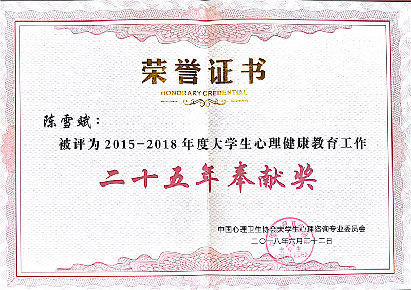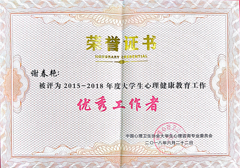 近日,第十三届全国大学生心理健康教育与咨询学术交流会在吉林大学召开,我校心理健康教育与咨询中心获2015—2018年度全国大学生心理健康教育工作先进集体称号,我校陈雪斌教授获全国“大学生心理健康教育工作25年奉献奖”、谢春艳副教授获全国“大学生心理健康教育工作优秀工作者”称号,这是我校继2015年以来,连续获得此项荣誉。