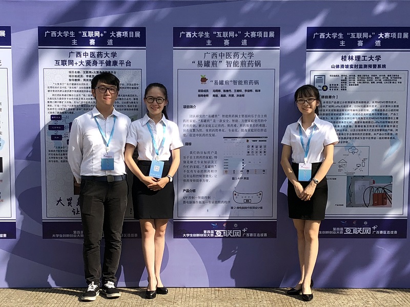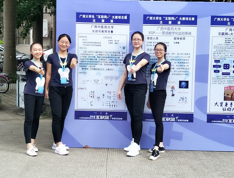7月17日,第四届中国“互联网+”大学生创新创业大赛广西赛区决赛在广西民族大学举行,学校党委副书记何并文出席了区赛决赛闭幕式。我校入围广西赛区决赛的4个项目在比赛中取得优异成绩,其中“丸状可食用牙膏”“互联网+大贤身手健康平台”及“‘易罐煎’智能煎药锅”3个项目荣获银奖;“EGP-管道数字化监控系统”项目荣获铜奖。