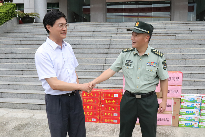 在中国人民解放军建军91周年到来之际,7月20日,学校党委副书记何并文率领校党委办公室、党委宣传部、武保部、附属瑞康医院等单位、部门代表组成的慰问团,前往我校军民共建单位凭祥市某部队进行慰问。